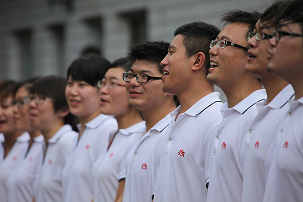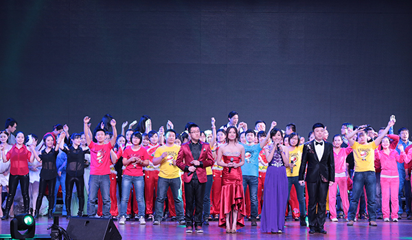 年會上,公司合唱隊首次登臺演出